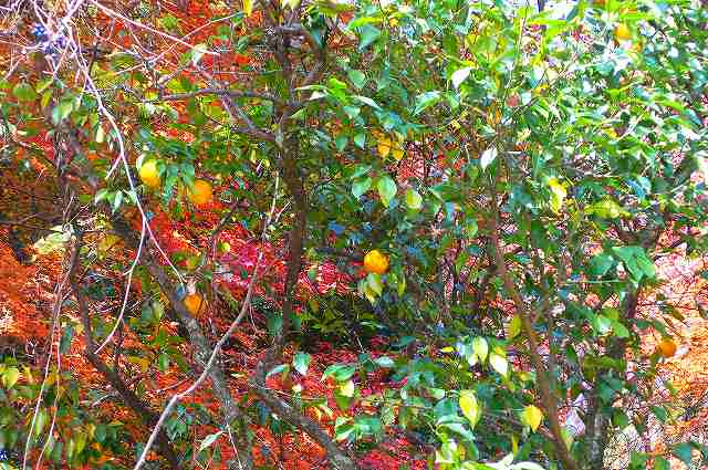 その横で、美しい黄色に輝く柚子の実。